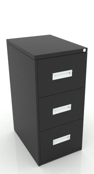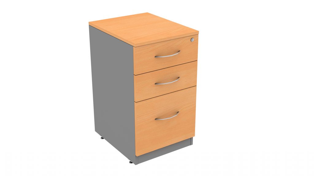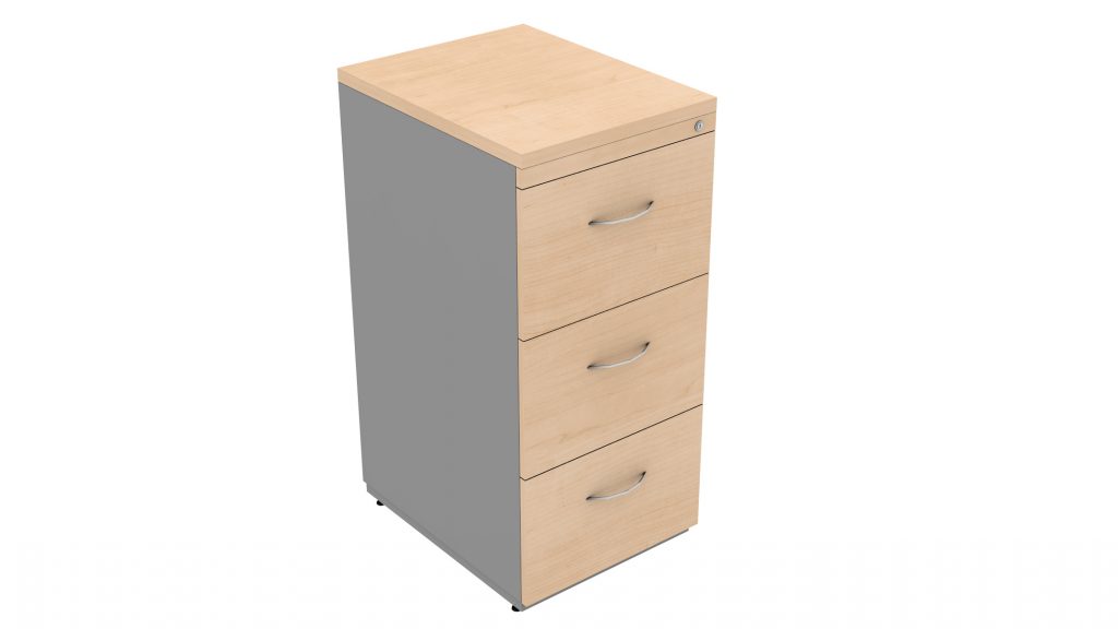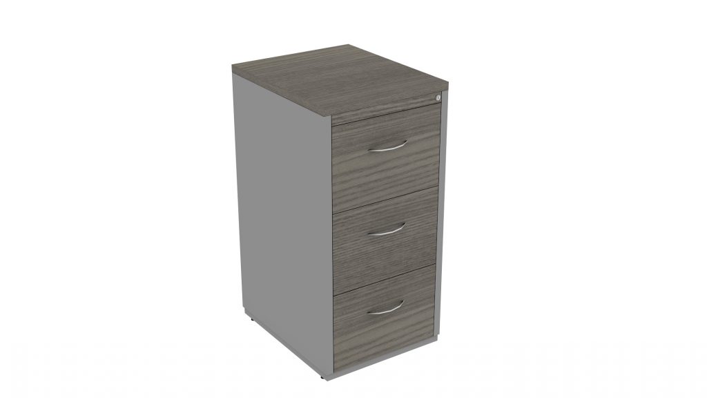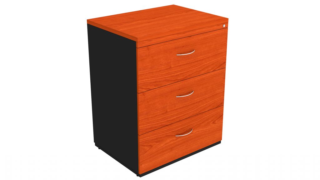 Archivero de 2 cajones papeleros y 1 gaveta, fabricado en Melamina, con correderas de extensión completa y cerradura múltiple.