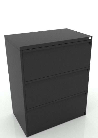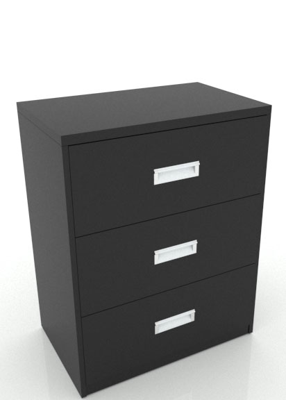 Archivero horizontal de 3 gavetas reforzado, fabricado en Melamina, con correderas de extensión completa y cerradura múltiple.