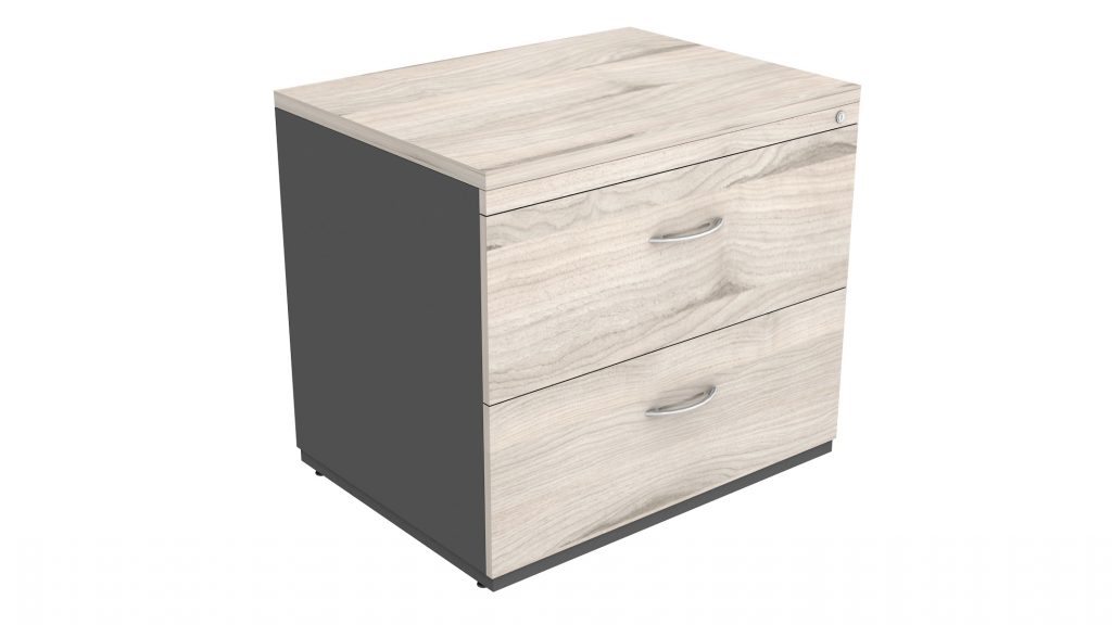 Archivero horizontal de 2 gavetas reforzado, fabricado en Melamina, con correderas de extensión completa y cerradura múltiple.
