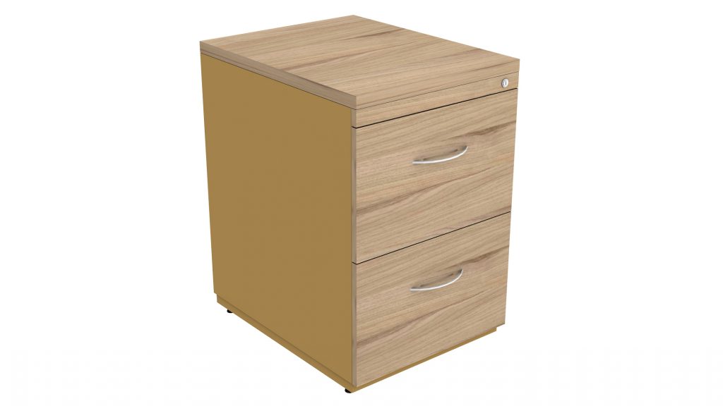 Archivero Vertical de 2 gavetas, fabricado en Melamina, con correderas de extensión completa y cerradura múltiple.
