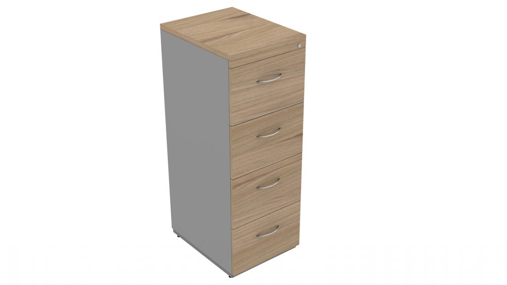 Archivero Vertical de 4 gavetas reforzado, fabricado en Melamina, con correderas de extensión completa y cerradura múltiple.