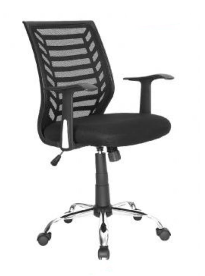 - Respaldo de estructura tubular redondo 3/4” en cal. 16, terminado en pintura epoxica texturizada color negro, tapizado con malla mesh color negro.