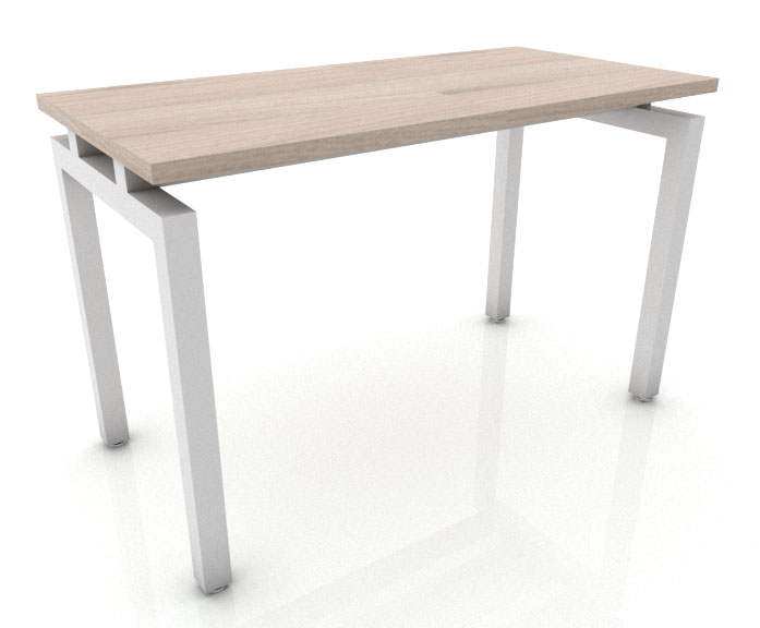 Mesa de trabajo suspendida (flotante) patas tipo “o”, cubierta en 28mm. y estructura metálica de 2″ tubular cuadrado cal. 18 en pintura horneada.