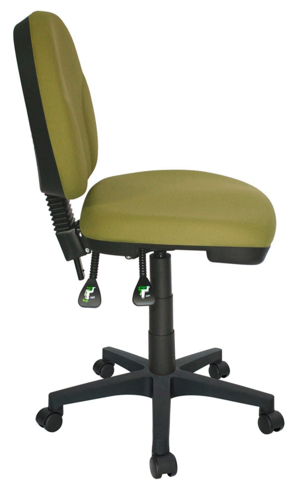 - Tres palancas: una para el accionamiento y bloqueo del pistón neumático, otra para ajustar y bloquear el ángulo de inclinación del respaldo y la última acciona y bloquea la posición de la inclinación del reclinaje.